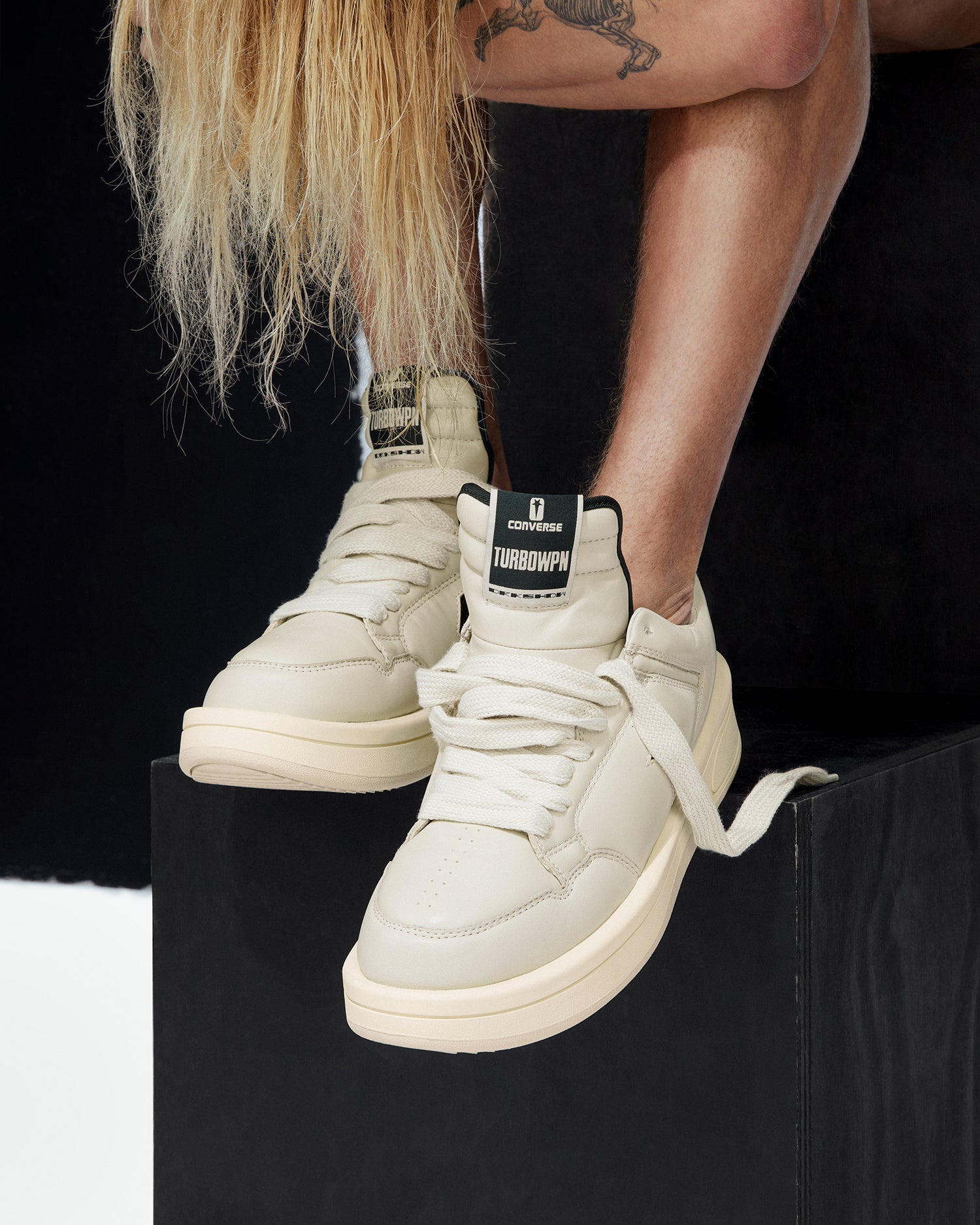 RICK OWENS and CONVERSE are up to no good again with another fantastic release, introducing a the Inflated TURBOWP Ox. The premium leather upper takes centre stage, drawing inspiration from the timeless Converse "Weapon" model of the mid-1980s, famously associated with basketball legend Magic Johnson. It boasts a distinctively elongated tongue featuring the signature DRKSHDW branding and a custom wrap-around woven label that proudly displays its model name. Available now online and instore at Concrete Store in black and oyster colorways!
