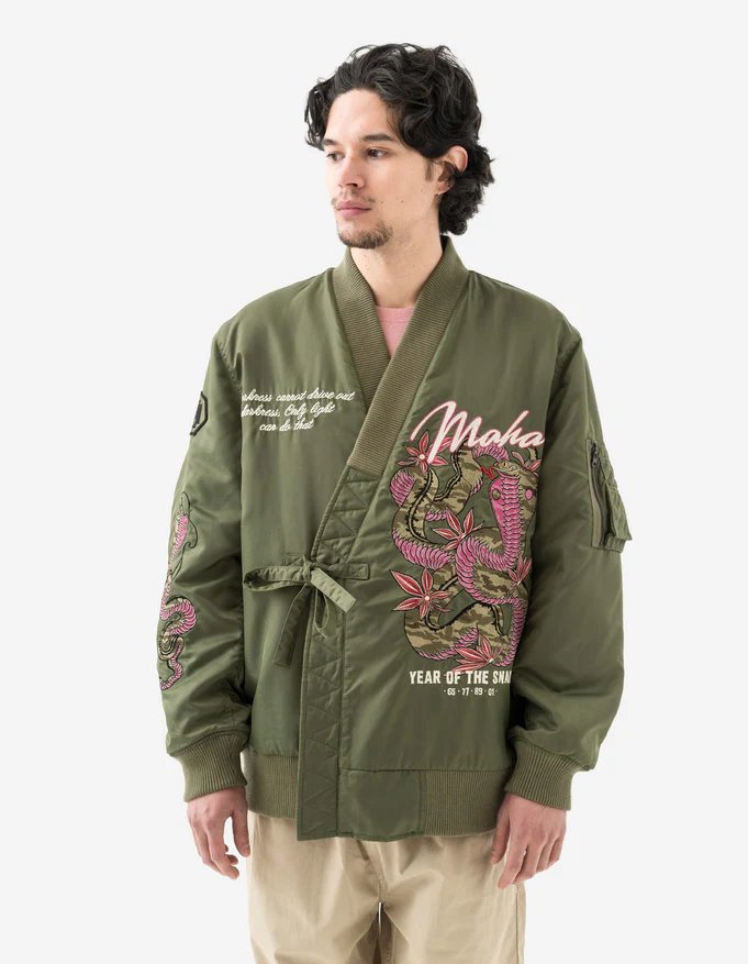 Fresh new summer items from MAHARISHI have arrived at Concrete Store. The line-up includes fluid shirts made from eco-conscious hemp and Japanese Cupro twill that showcase hand-machine embroideries. Flight jackets, Snopants, various kimonos, pleated trousers, dragon and snake themed items, Muay Thai shorts, long and short sleeve shirts and a lot of beautiful black, pink and olive colors. Shop online and instore!