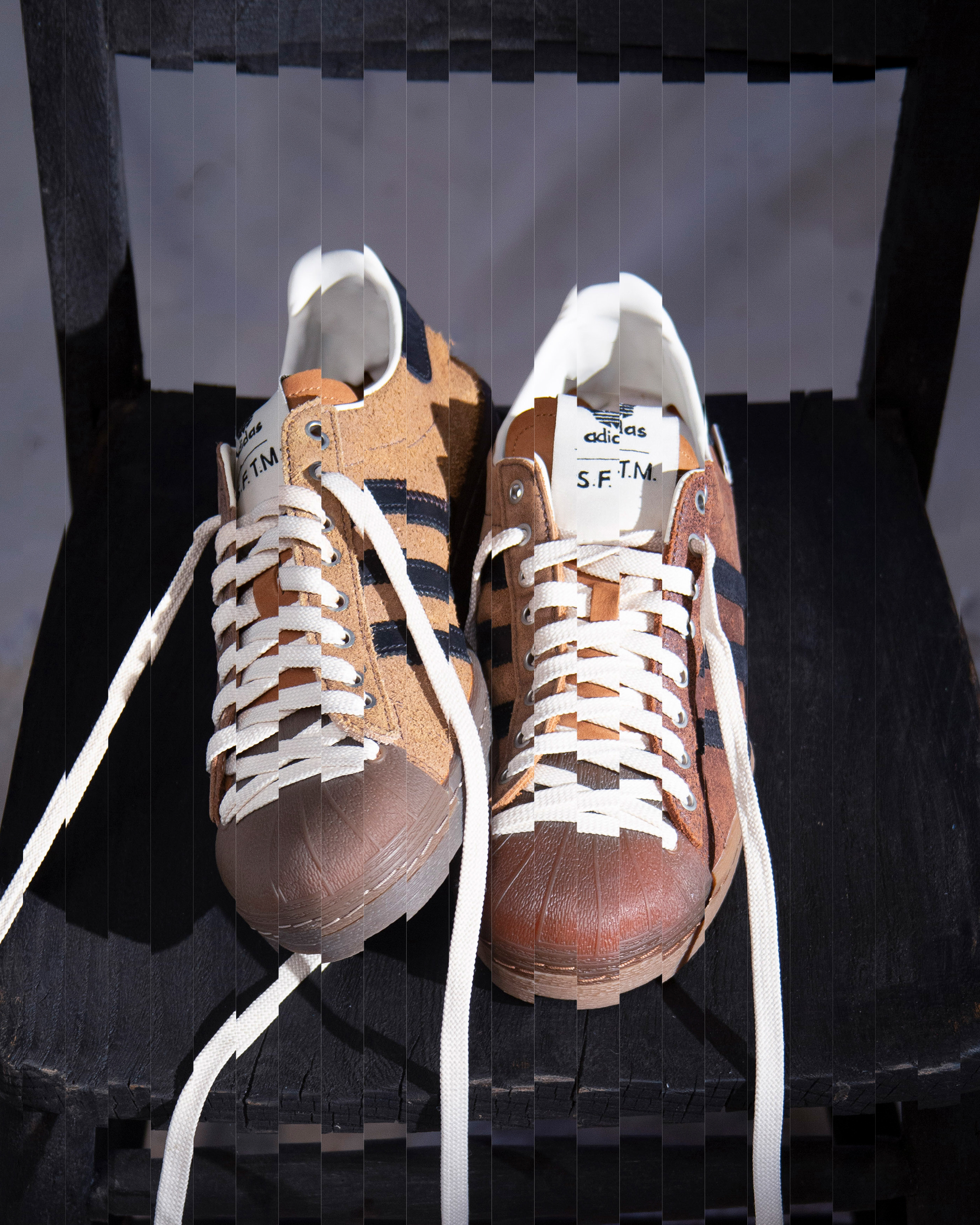The ADI005 collection draws from pastoral life, from the language of the land — domes, doorways, spaces lived in. A world of shepherds and goats, charred toast, fresh milk. At its heart are two reimagined silhouettes, the iconic Superstar and the Adistar Cushion, rebuilt with soft earthly toned leathers, weathered soles and hardwear. This nomadic vibes continue through the clothing range, which includes athleasure pants, jackets and knits – as if shaped by movement through landscape, weather and time. Available online and instore now!