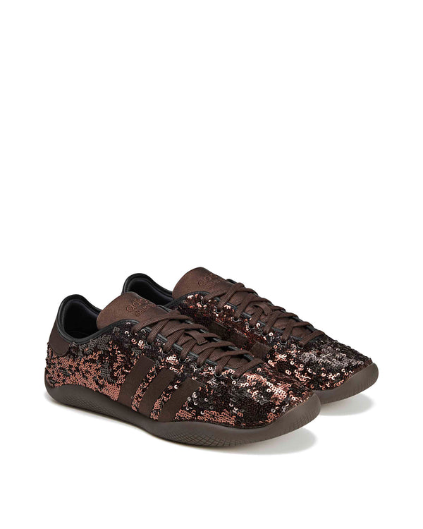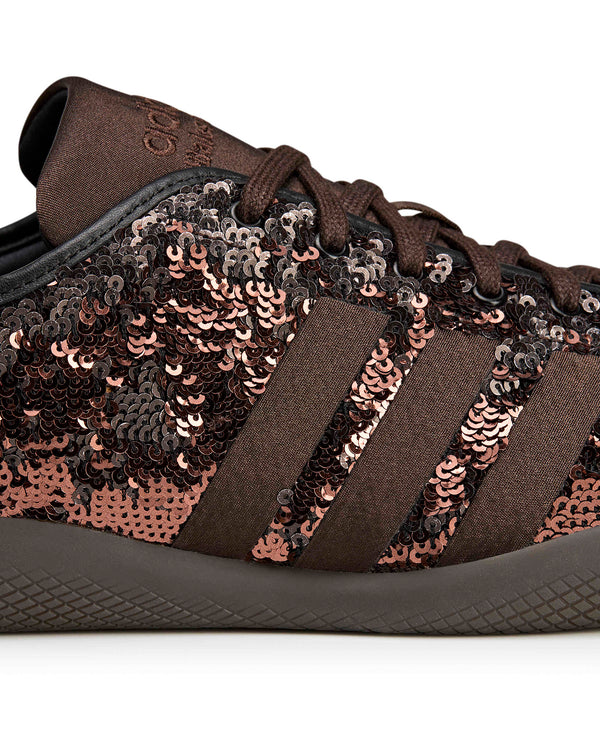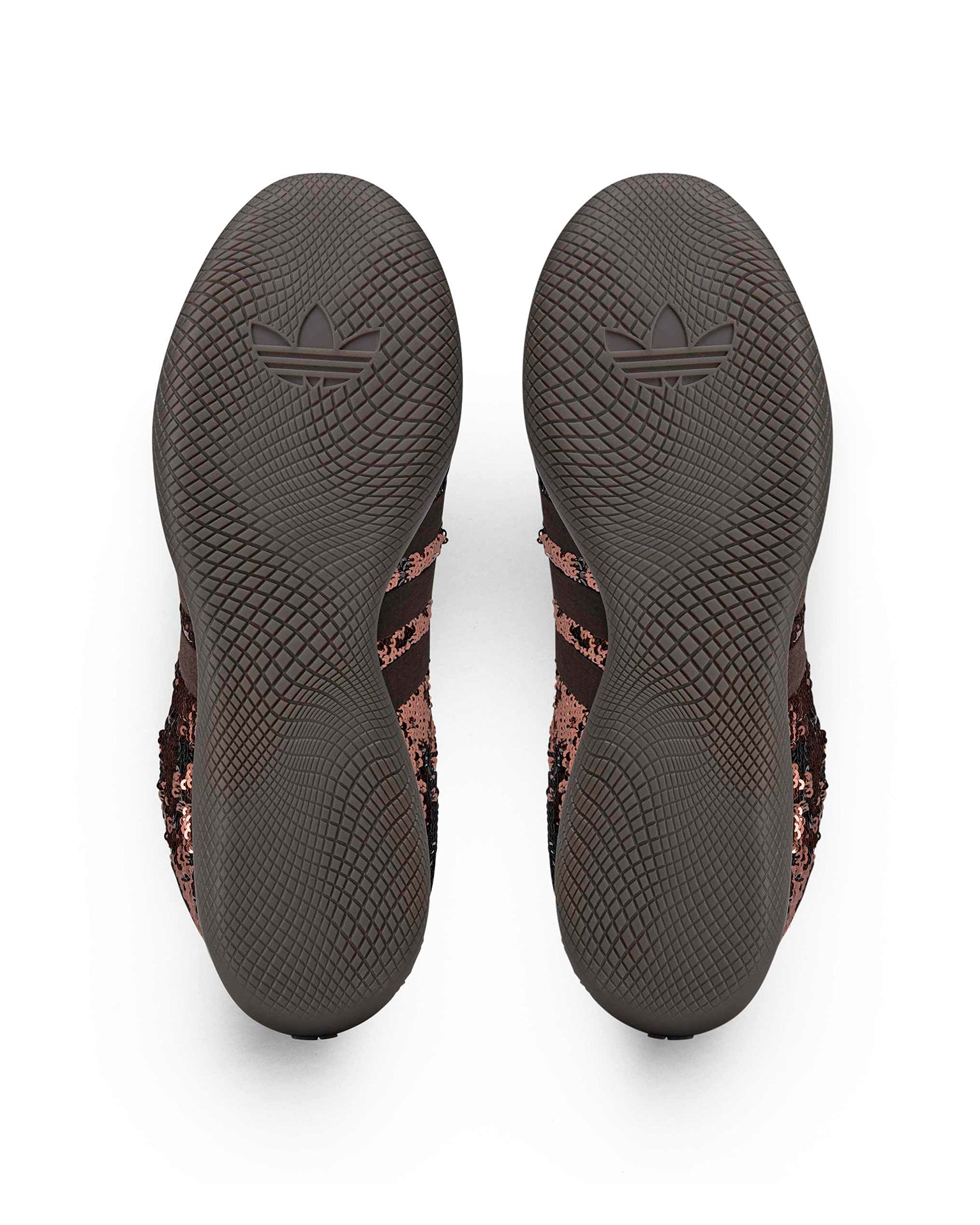 This adidas Originals by Wales Bonner Karintha Lo shoe draws inspiration from key moments and elements of the adidas legacy to shape the fundamental sneaker silhouette. From there, a new sole design is introduced, with the outsole’s pattern evoking a sense of fluidity. The upper features shimmering sequins and satin 3-Stripes along the sides.
