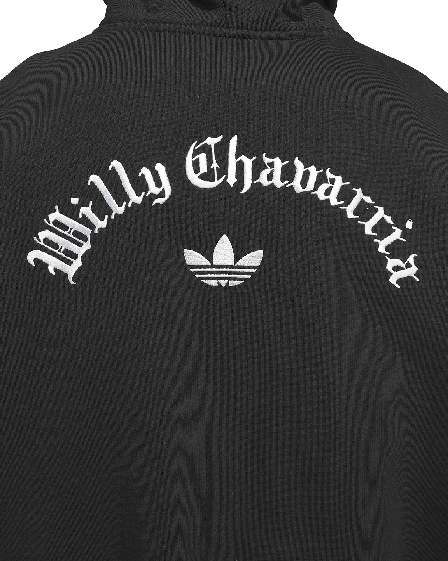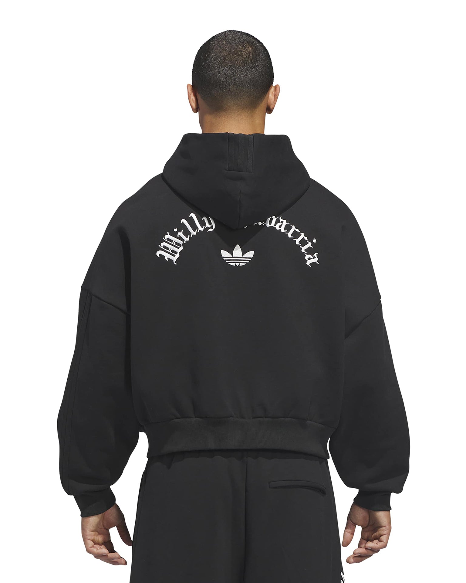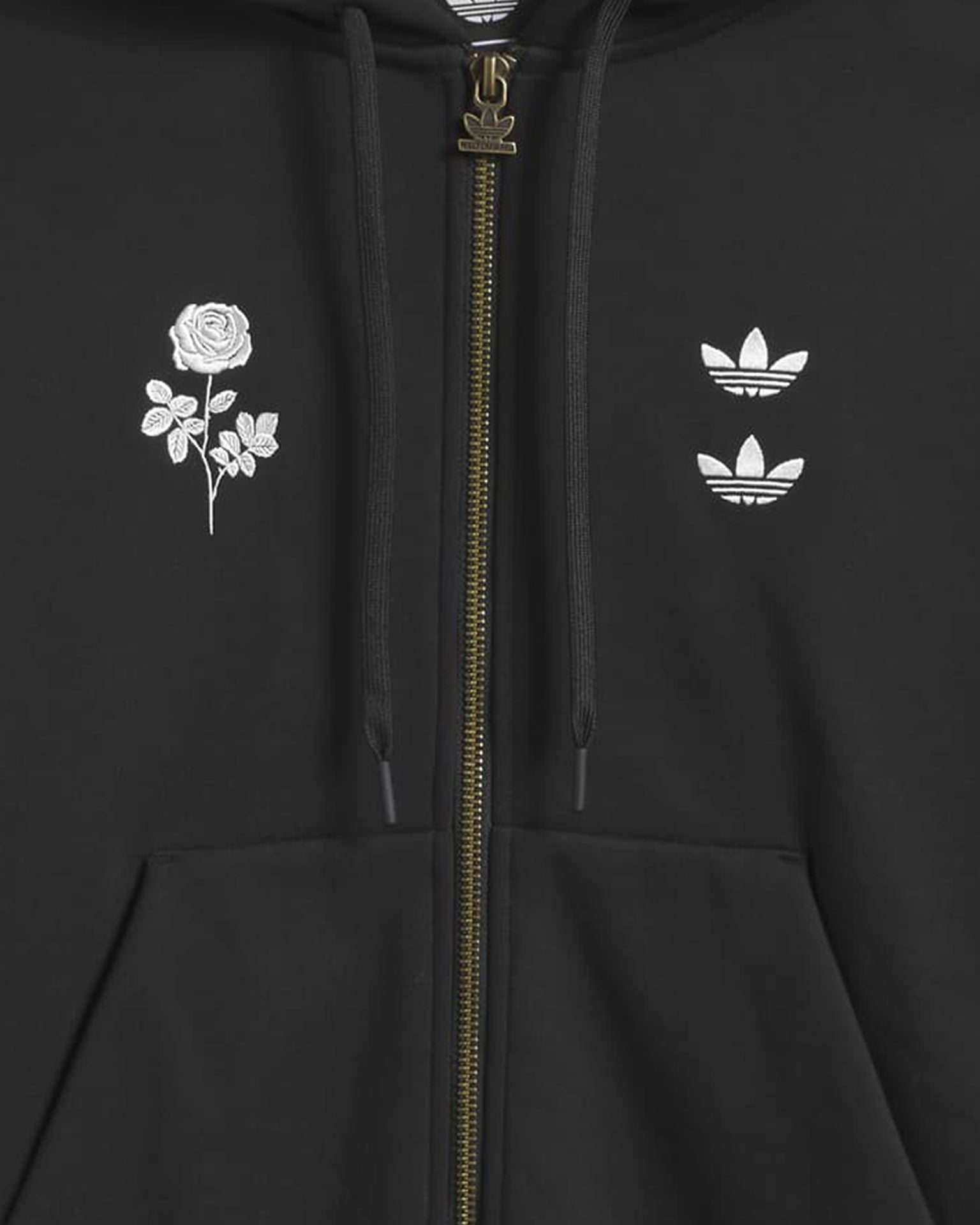 When style meets comfort, the Chavarria Heavyweight Zip Hoodie is elevated in a heavyweight french terry fabric to provide maximum comfort. The hoodie is designed with voluminous proportions in body and arms. Functional details include a ribbed waistband and cuffs, a hood and kangaroo pocket. The hoodie has a centre front zip closure. Branding is symbolized by embroidered double trefoils of the left chest and applied adidas 3-stripes branding down the sleeves and top of hood. There is a embroidered rose on the right chest and embroidered "Willy Chavarria" and adidas trefoil on the back.