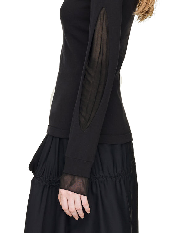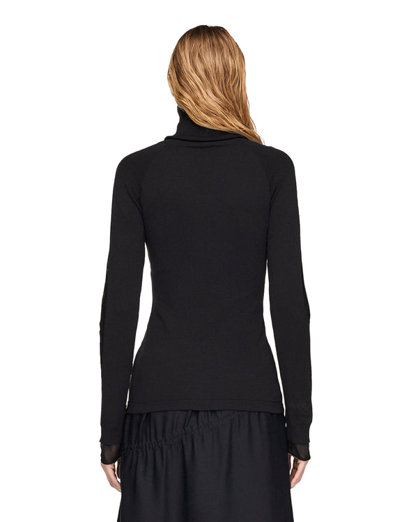 The Y-3 Hooded Knit Top explores a minimalist and modern silhouette. It's crafted from a soft and durable polyester knit fabric, featuring semi-translucent cutouts for an elegant, standout look. A small Y-3 logo on the back neck completes the design.