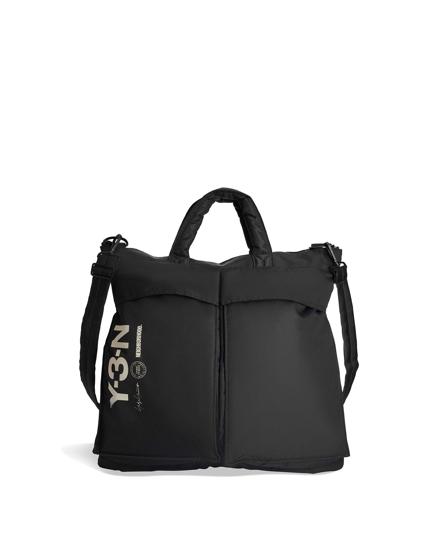 The Y-3-N Padded Tote Bag is crafted from nylon fabric that's sleek and durable. Dual front cargo pockets, a dedicated laptop compartment and a internal zippered pocket with a D-ring provide functional storage. The padded handles provide let you carry it over the shoulder or in hand. In collaboration with streetwear brand NEIGHBORHOOD and inspired by the adrenaline of the racetrack, bold graphics bring American motorsport influence together with Y-3 design.