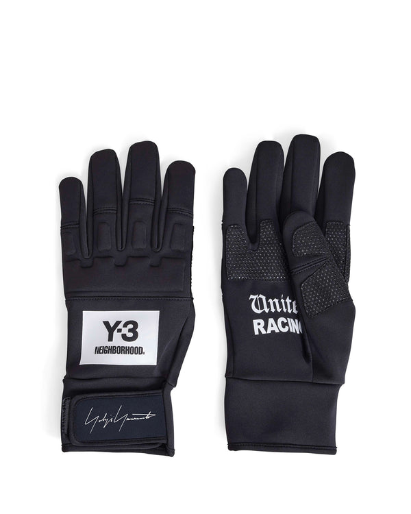 The Y-3-N Racing Gloves offer the pinnacle of style and performance, with a slim, sleek fit and embossed badges on the knuckles and fingers. A synthetic suede palm with silicone prints adds texture and grip, finger eyelets enhance breathability and hook-and-loop straps for a secure fit. In collaboration with streetwear brand NEIGHBORHOOD and inspired by the adrenaline of the racetrack, bold graphics bring American motorsport influence together with Y-3 design.