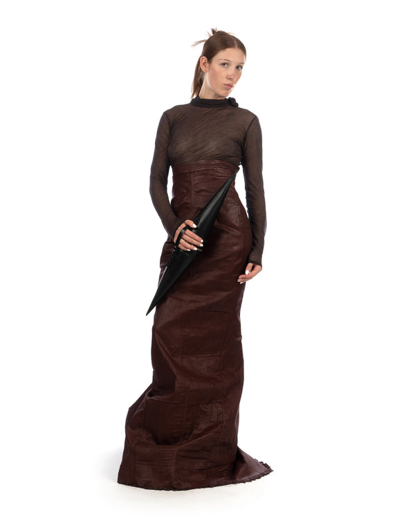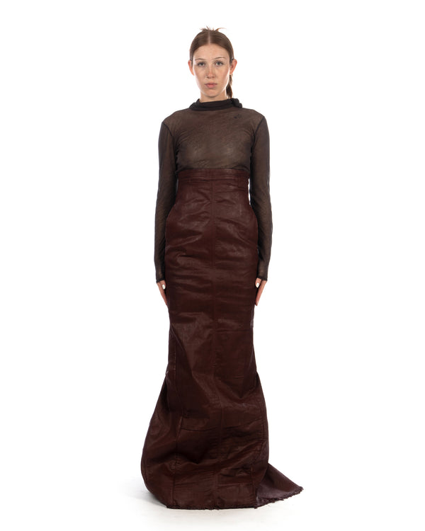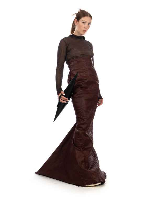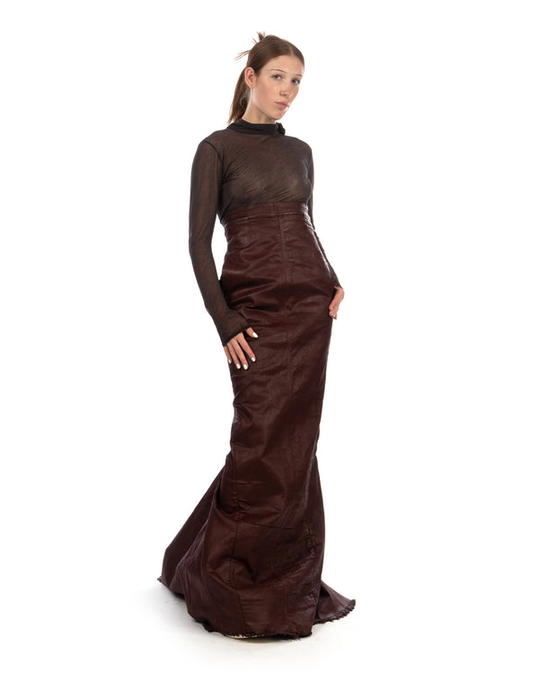 Lido Denim Skirt in Scab Wax from the DRKSHDW by Rick Owens collection, made from Felpa Heavy Sweat 100% GOTS-certified cotton.