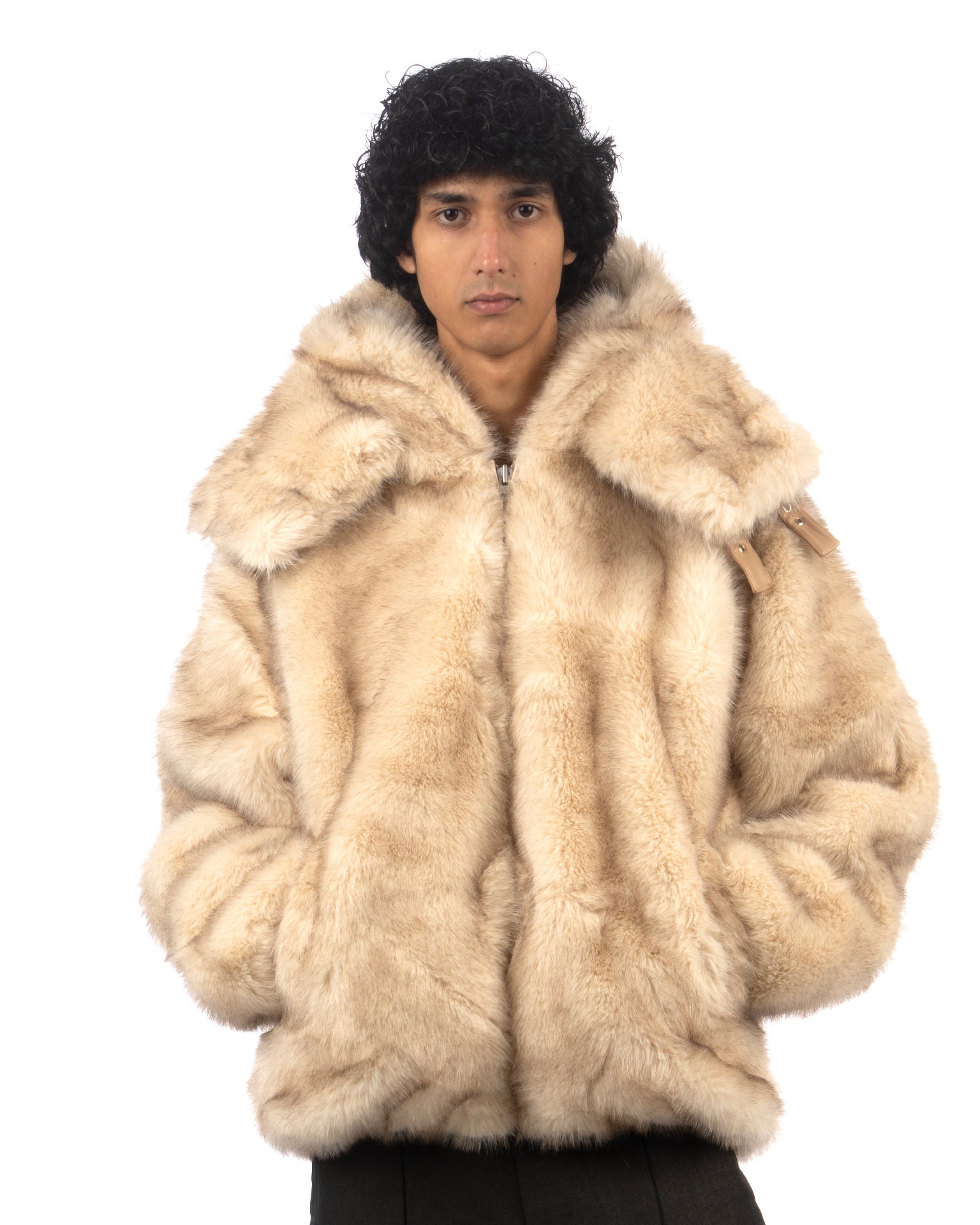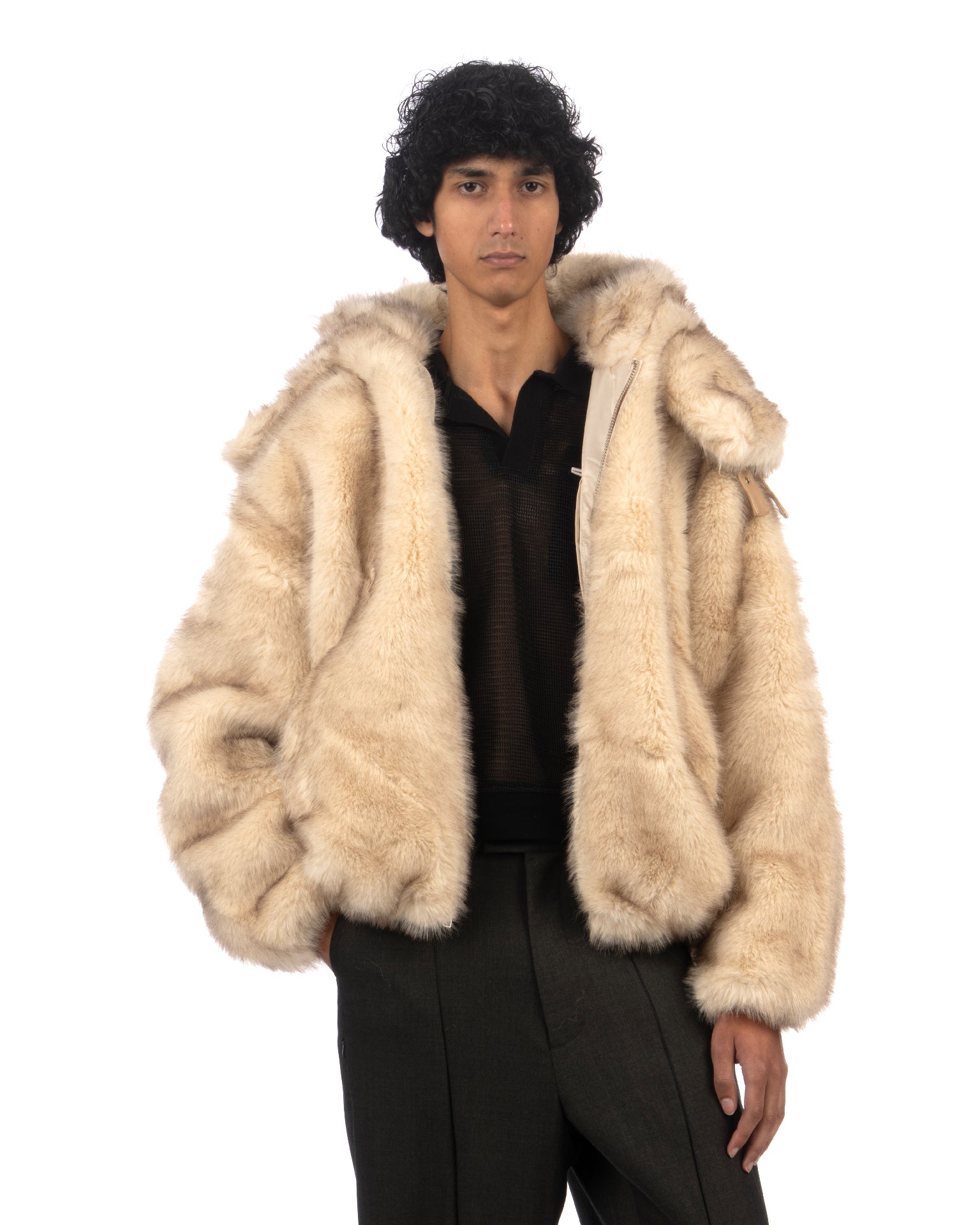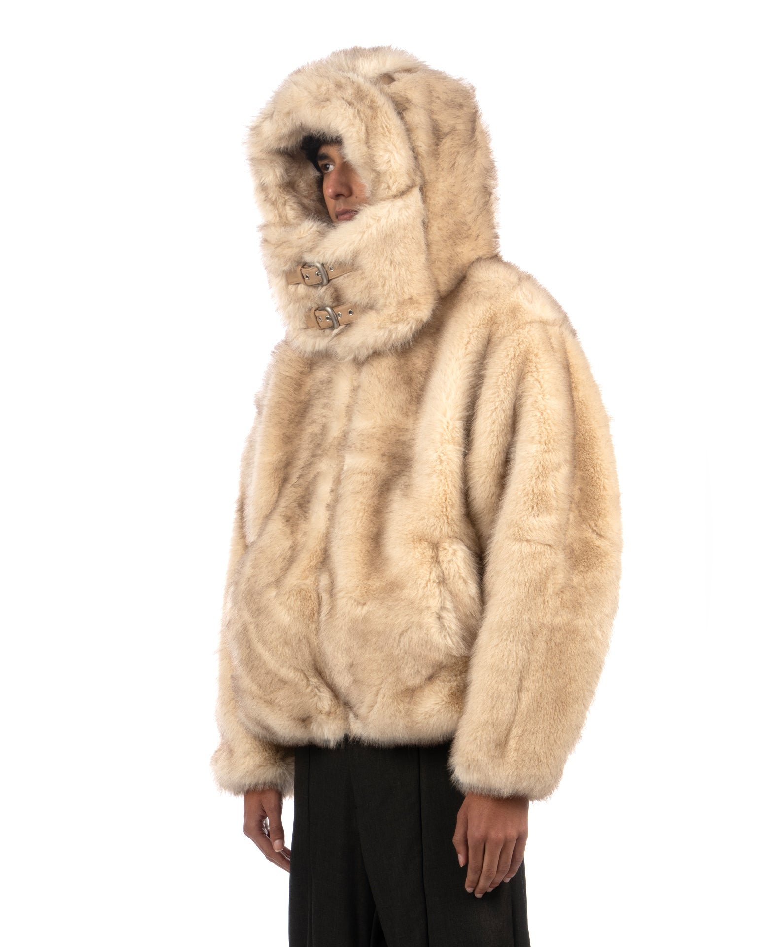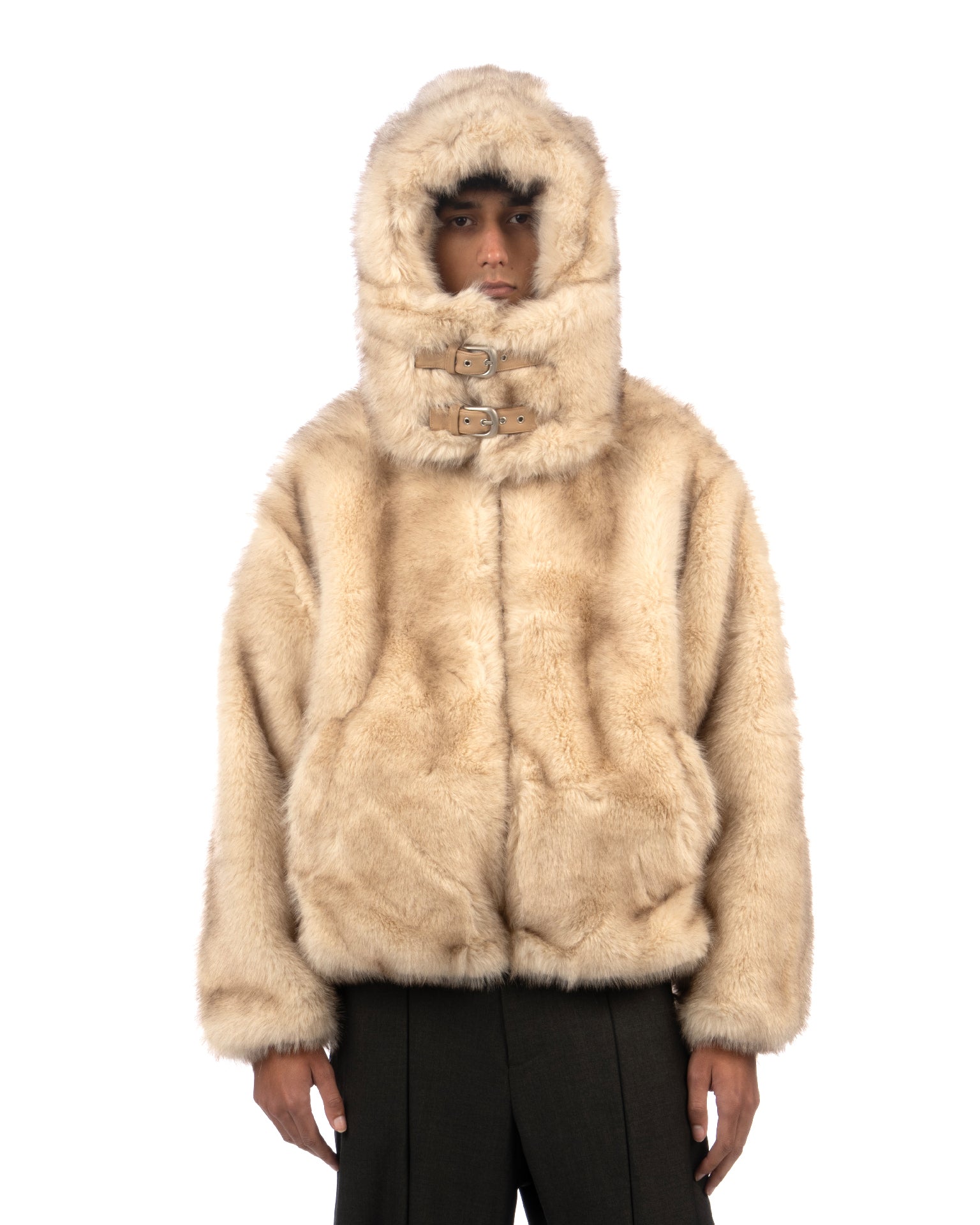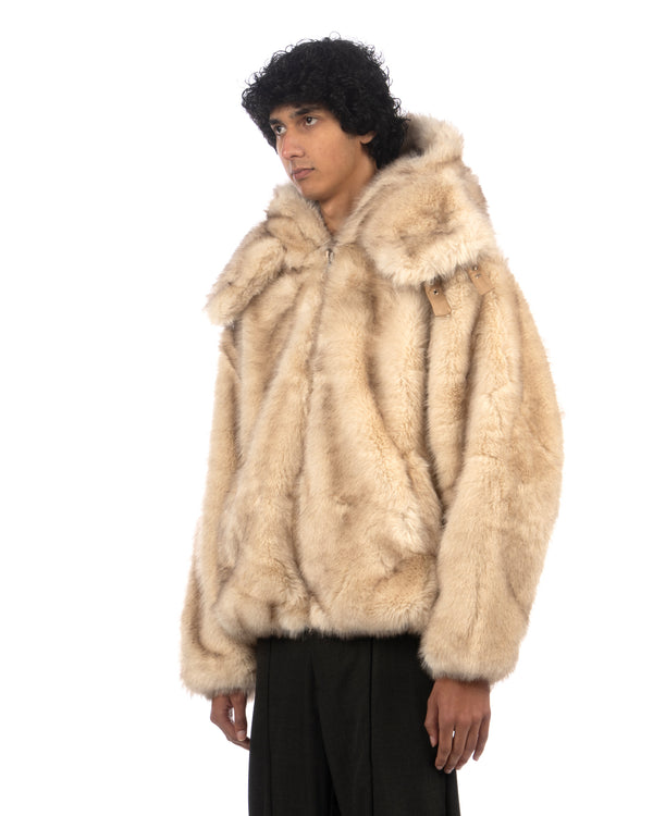Kidsuper Hooded Fake Fur Jacket Cream