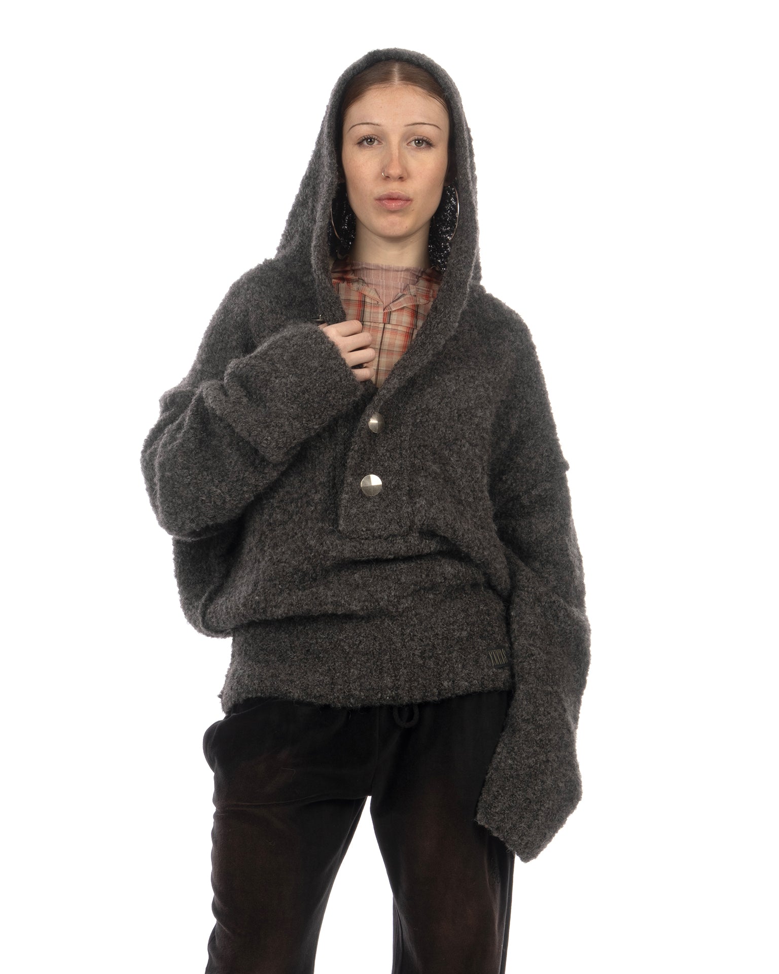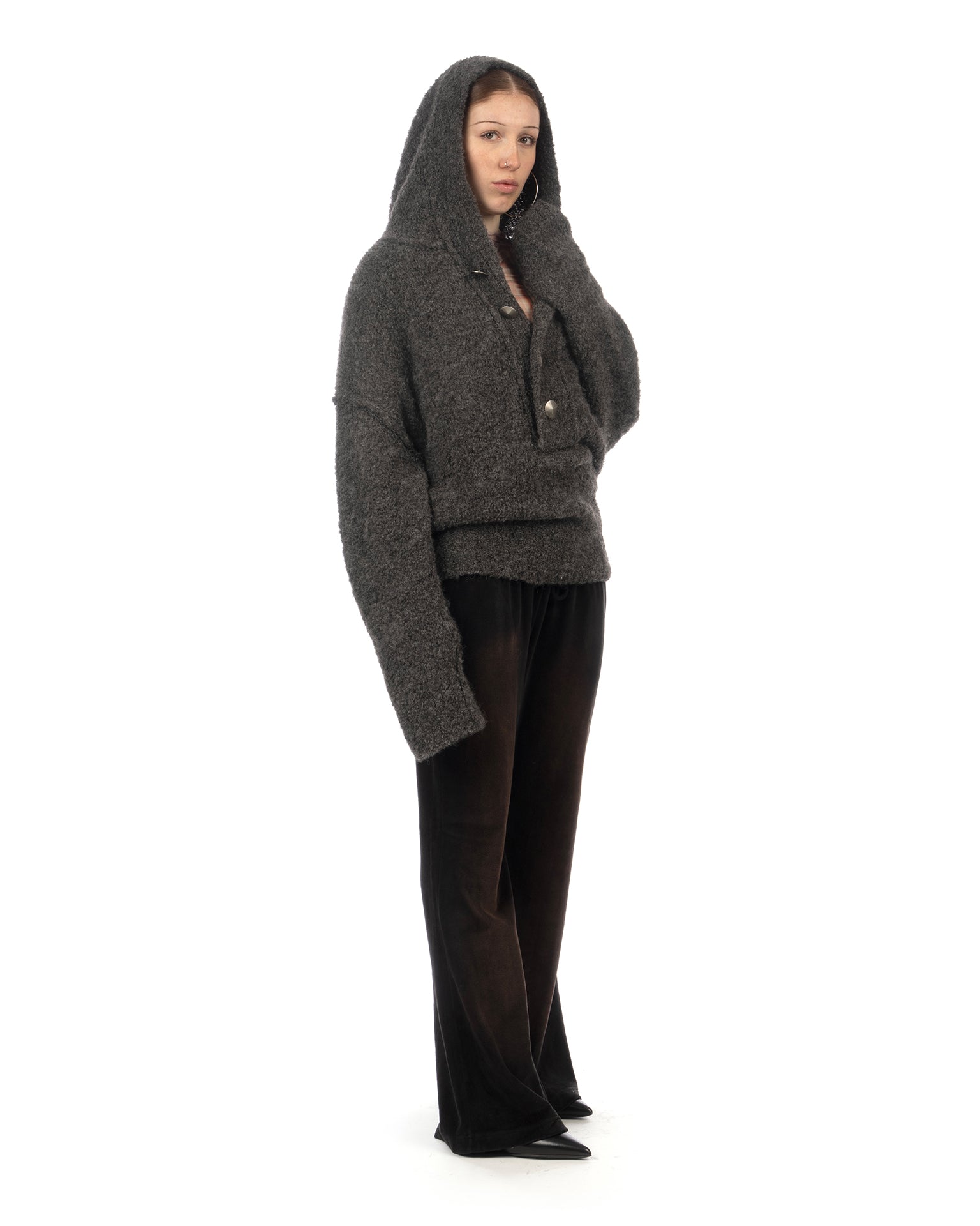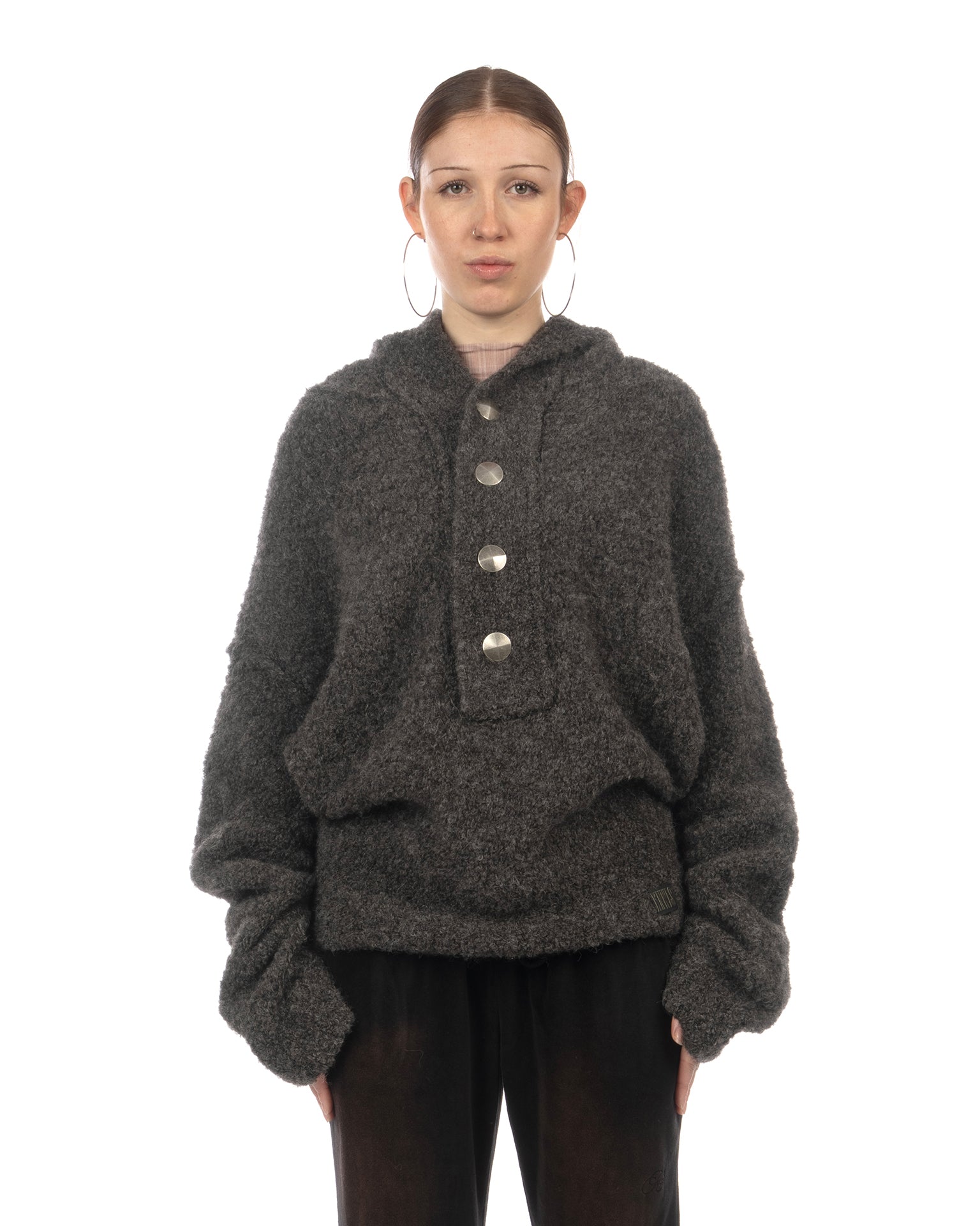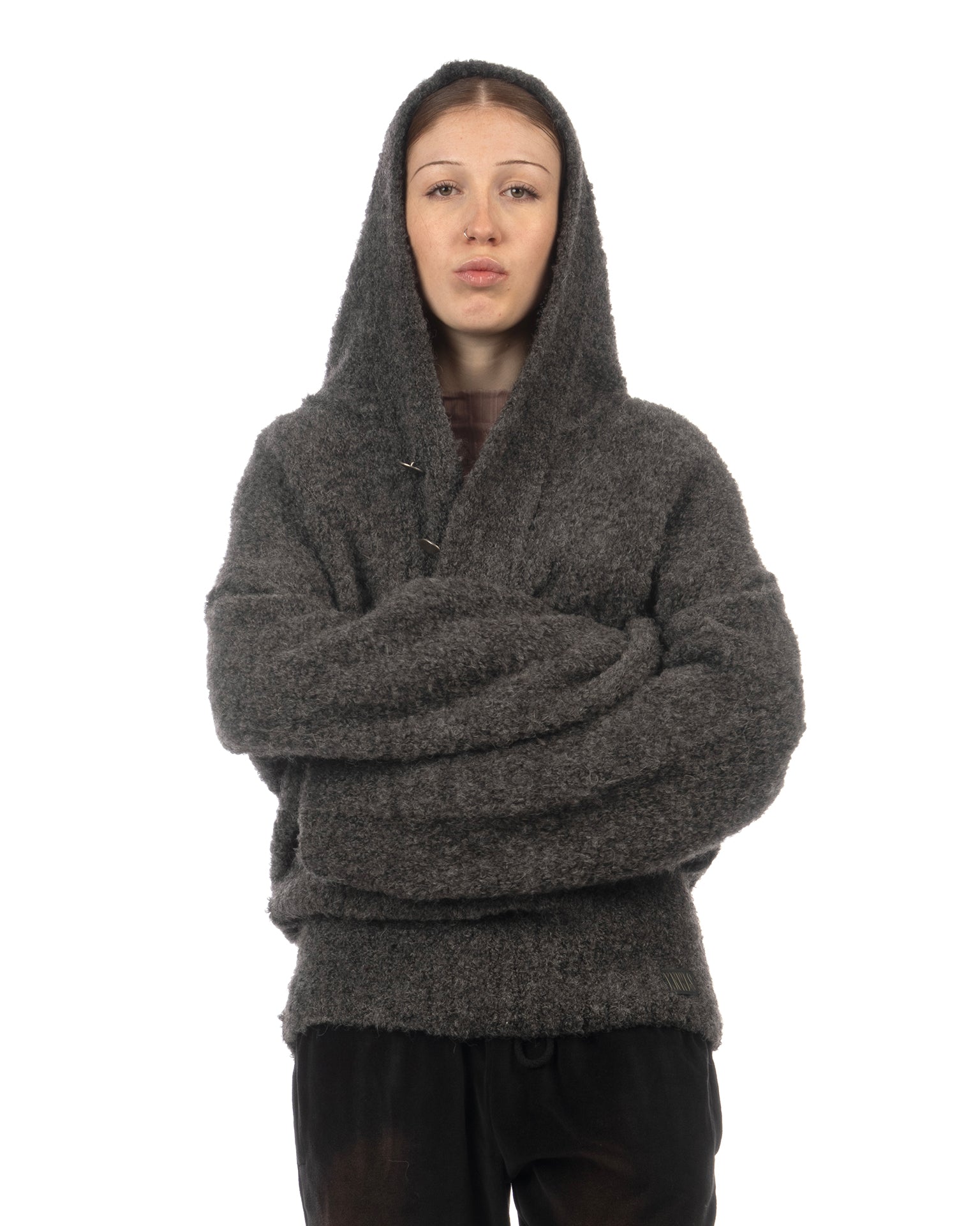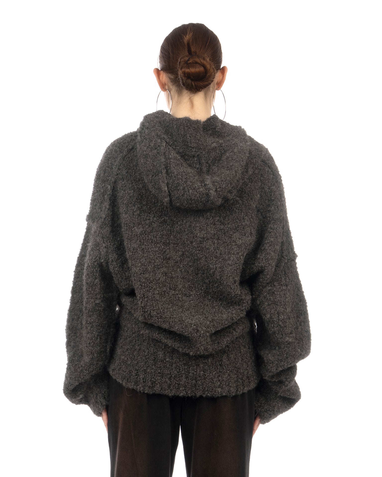 KNWLS Mandi oversized hooded jumper in boucle yarn grey.