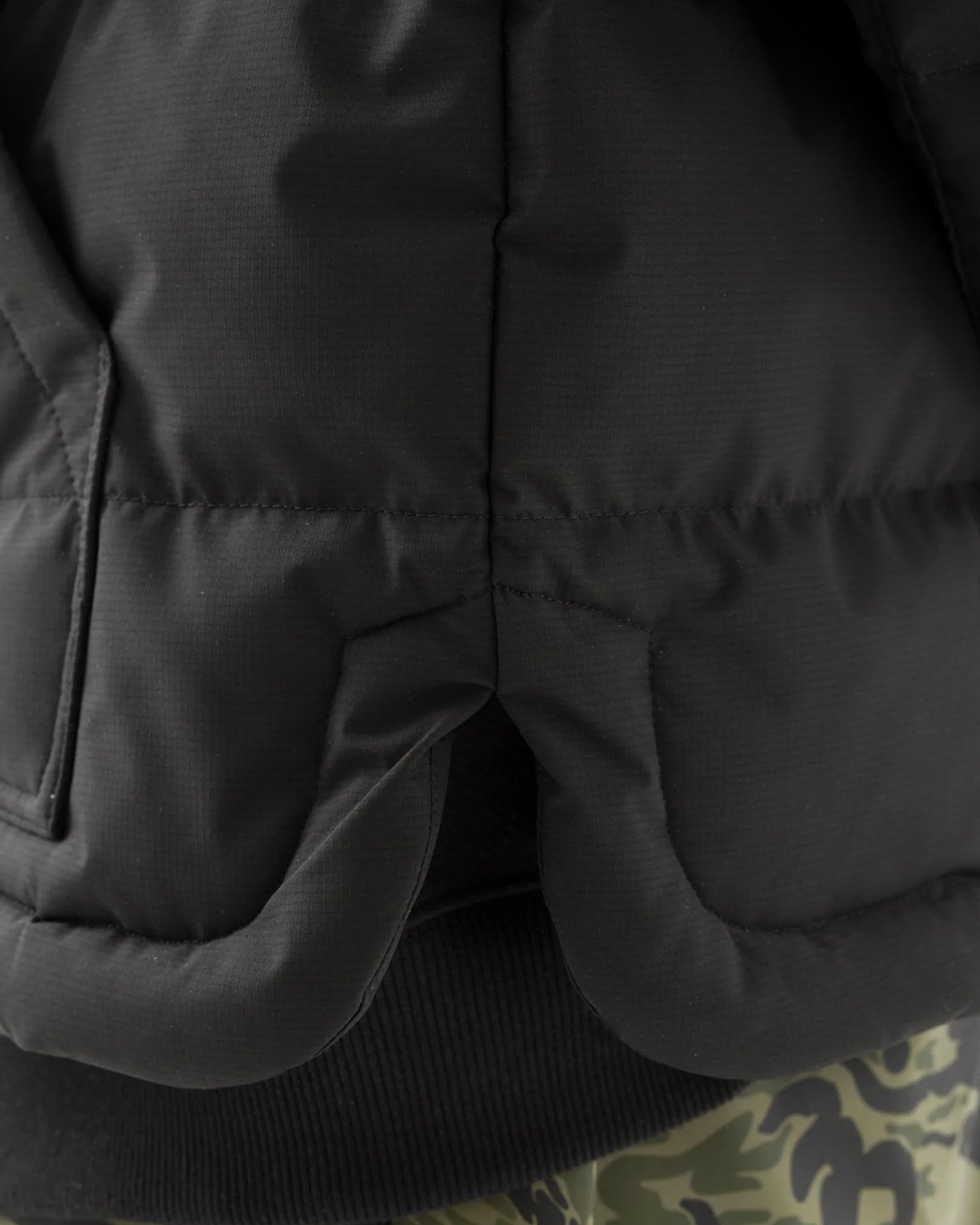 Primaloft® Silver insulation fills horizontal baffles, delivering exceptional warmth and reliable heat retention in cold conditions. Constructed from a lightweight and durable recycled Micro Ripstop. Using thicker and stronger reinforcement yarns, interwoven to create a crosshatch pattern, the technique provides a dense and water-repellent fabric.