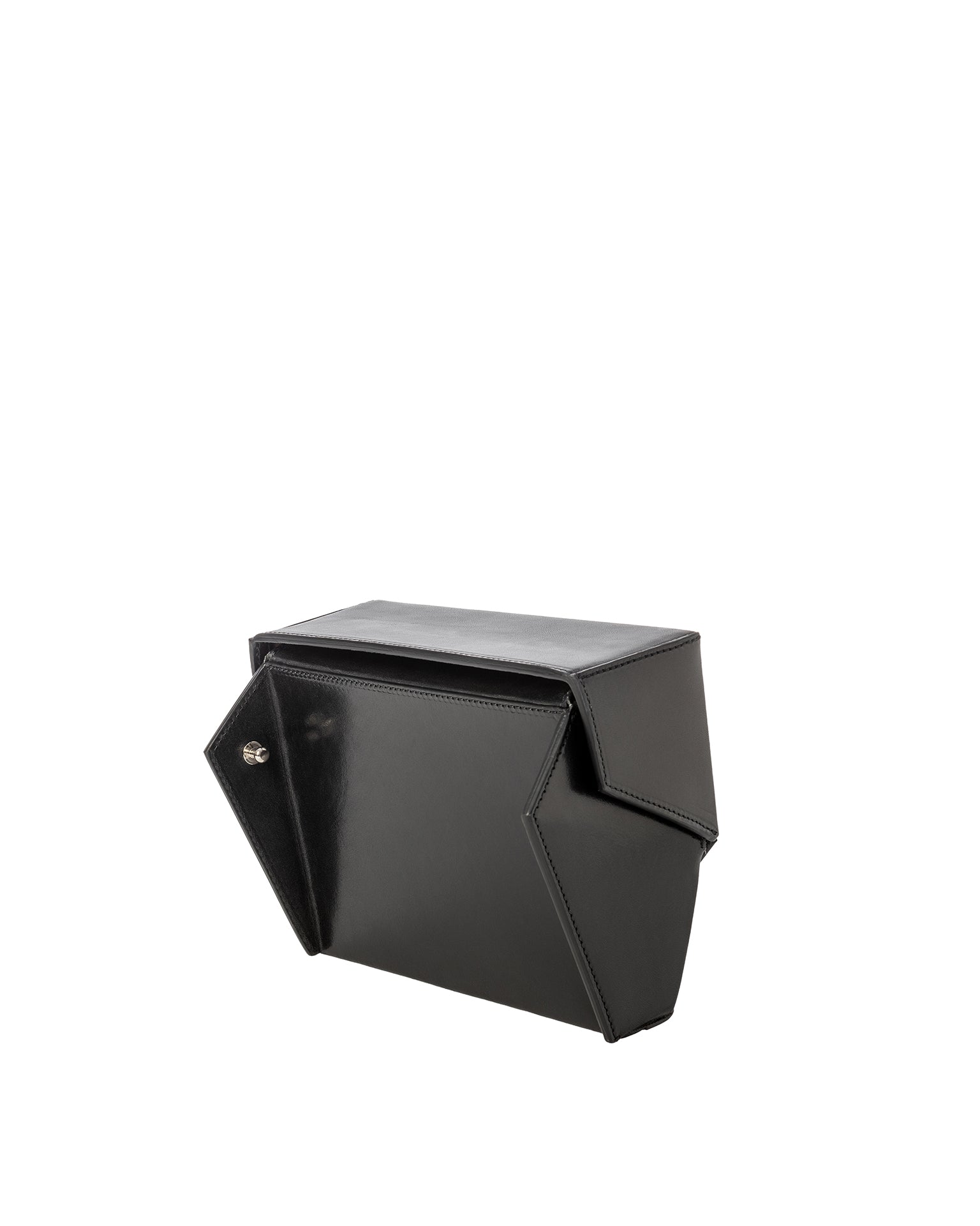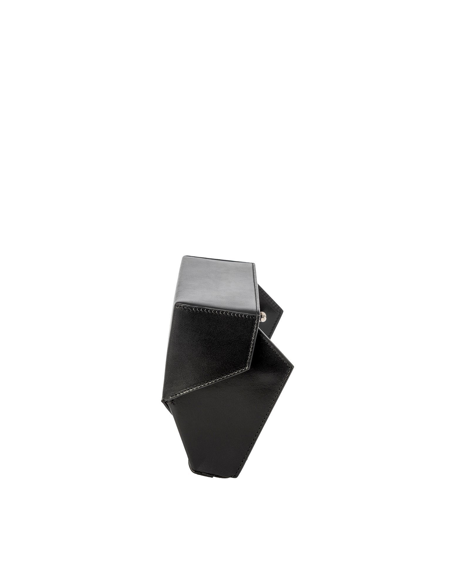 A faceted shape that can be worn as a crossbody or belt bag. Remove the strap, and it becomes a hand-held purse. The flip-open partition is perfectly sized to accommodate your sunglasses as well as four cards.