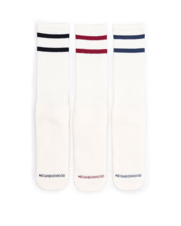 Crew-length ribbed socks with a jacquard-knit logo on the toe and stripe details. Made from a cotton-blend yarn. Logo print on the sole. Comes in a set of three pairs.